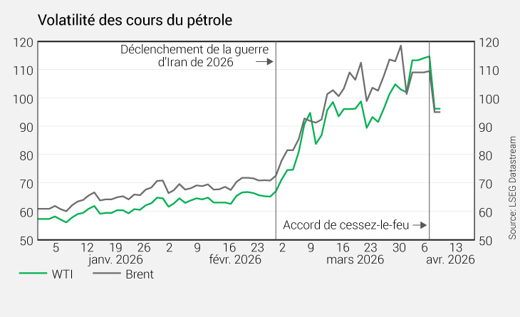 L’accord de cessez-le-feu de 15 jours conclu entre les États-Unis et l’Iran marque le point de départ d’une délicate désescalade. En dépit des assurances iraniennes, les tankers ne se pressent pas pour franchir le détroit d’Ormuz. Compte tenu de l’environnement géopolitique très incertain, plusieurs scénarios macro-économiques et financiers doivent toujours être envisagés. Une approche agile et sélective est privilégiée dans la gestion de portefeuille. Point d’étape avec Sébastien Gyger, CIO de la BCV.
